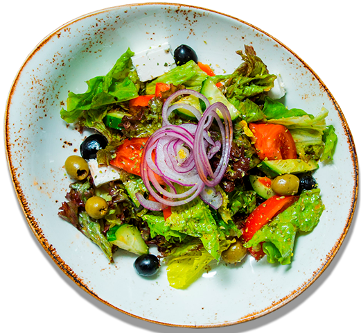 свежие овощи, салатные листь, маслины и оливки, сыр "Фета",пряности